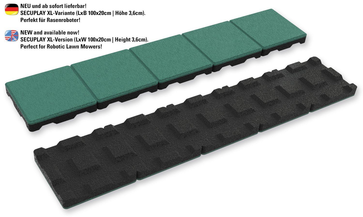 Entwickelt wurde die SECUPLAY Gummi-Mähkante als Lösung einer bekannten Problematik. Grenzt beispielsweise ein Hochbeet, Spielturm, Sandkasten, Gartenhaus, Zaun oder eine Holz-/WPC-Terrasse ohne Mähkante an den Rasen, schneiden meist weder Rasenmäher, noch Mähroboter randlos bis zum Objekt. Der Rasentrimmer erscheint zwar hier als einfache Lösung, wer aber den Randbereich trimmt, beschädigt schnell das angrenzende Material oder dessen Oberfläche. Als Alternative zur SECUPLAY Gummi-Mähkante kämen herkömmliche Mähkanten aus Betonsteinen in Frage. Jedoch müssen diese meist in Beton gesetzt und verfugt werden. Im Gegensatz zum Betonstein speichert die SECUPLAY Gummi-Mähkante kein Wasser und bietet deshalb eine Verwitterungsvorbeugung angrenzender Objekte. Im Vergleich zum Trimmen erspart man sich nicht nur das Risiko der Beschädigung des angrenzenden Objekts, sondern auch den Arbeitsschritt an sich.