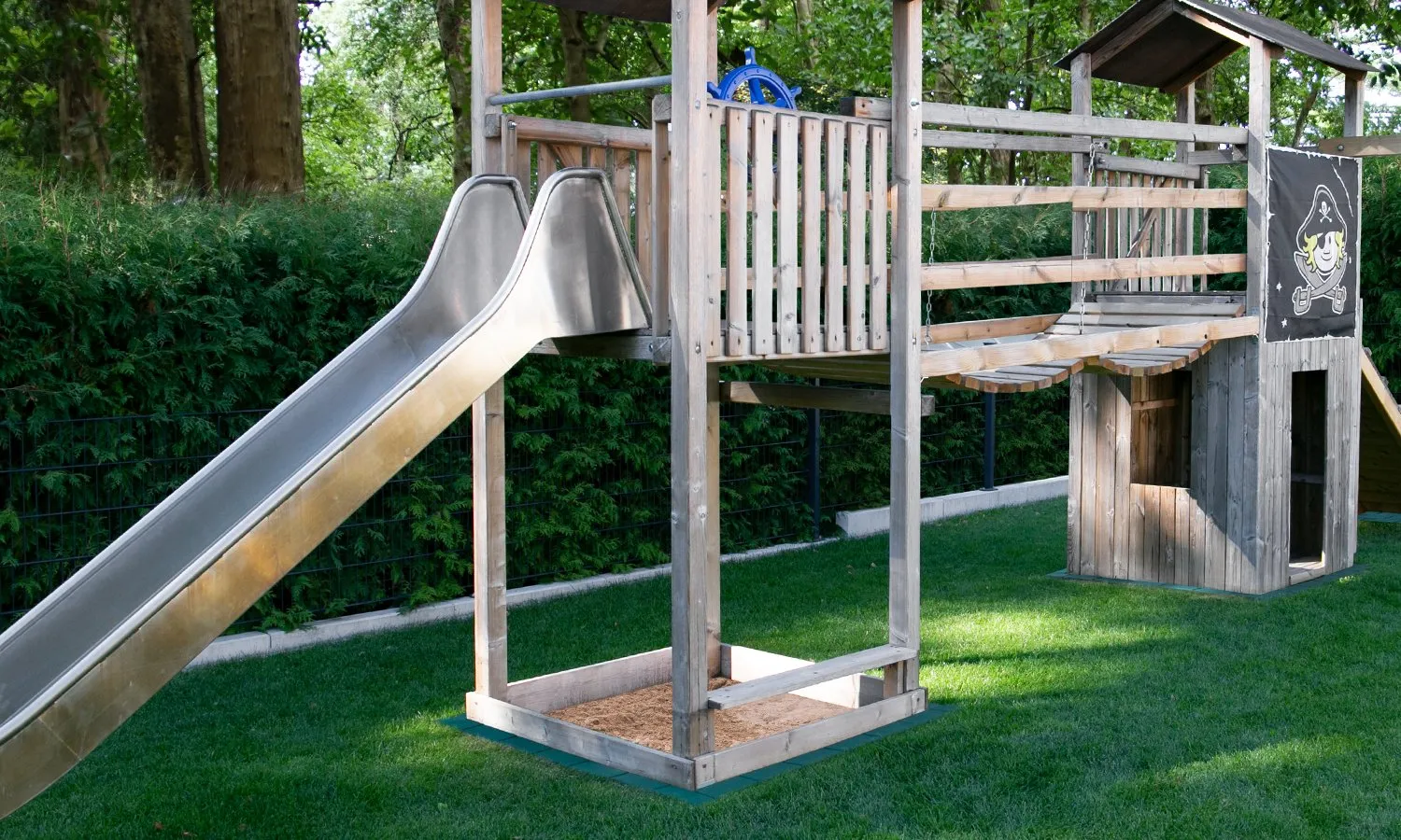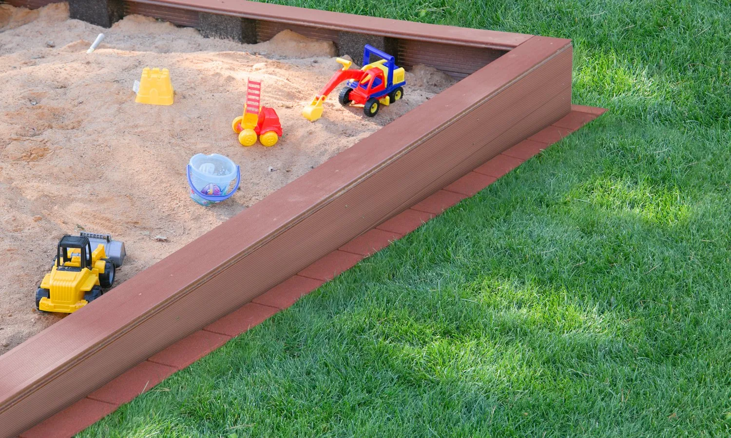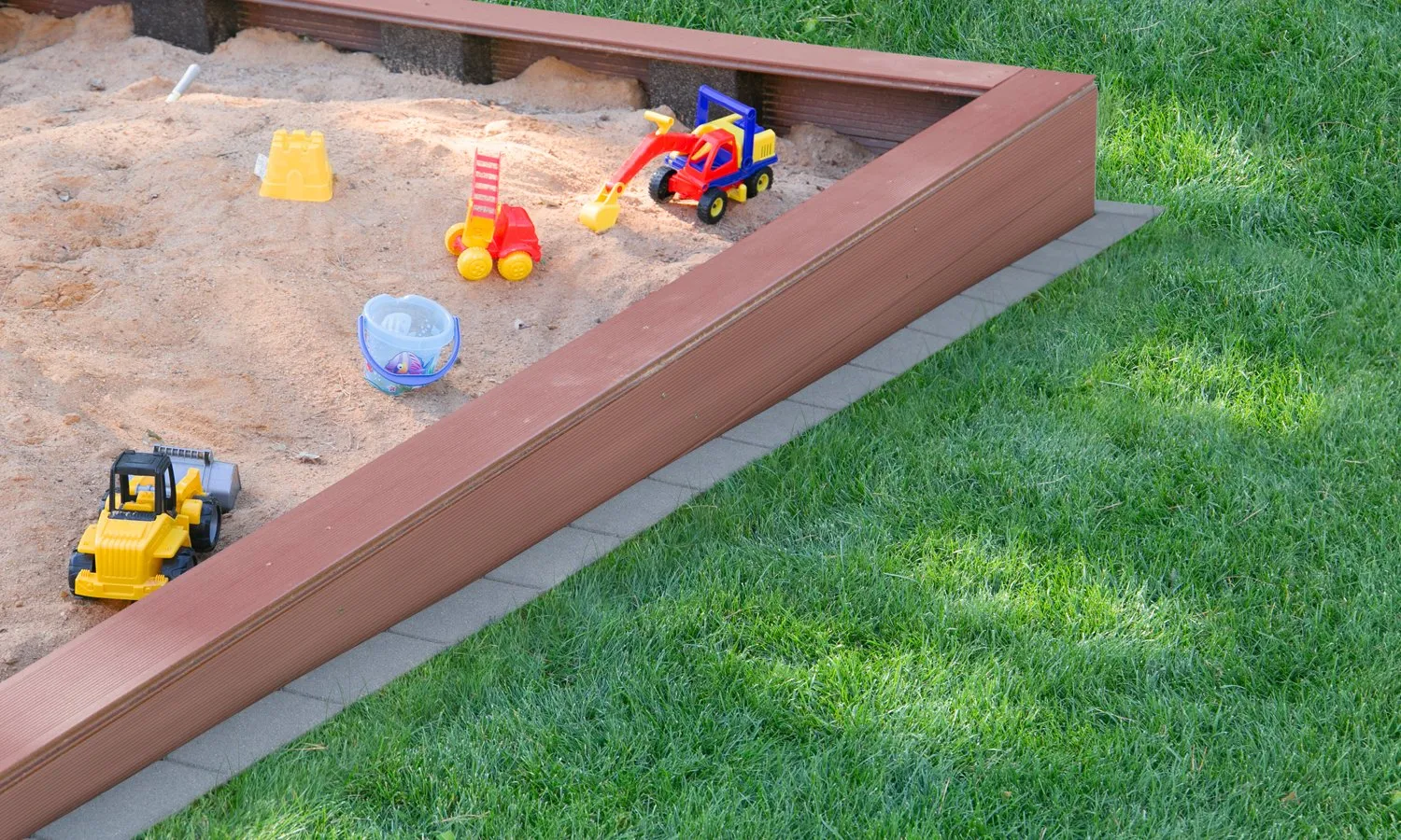 und für sichere Spielflächen um z.B. Spielturm und Sandkasten